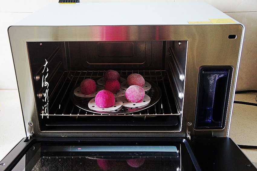 送入蒸烤箱40度二次发酵10到20分钟,如果上屉蒸可以不用二次发酵,因为蒸烤箱升温很快,最好二发几分钟,然后选择蒸面食功能,切记水箱要加满水,100度蒸15分钟。