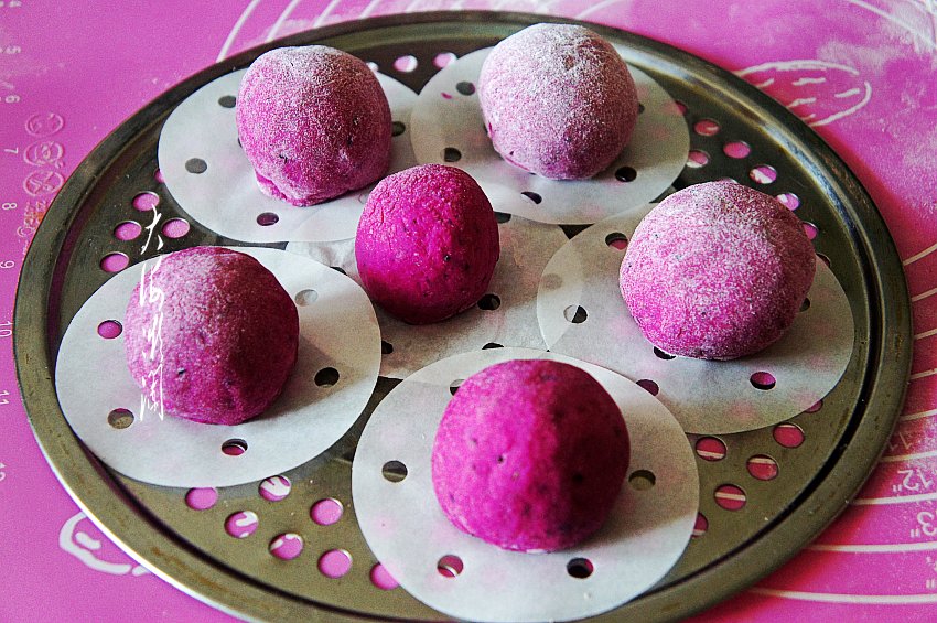 出锅装盘,鲜艳的火龙果青稞面大馒头,看着就有食欲,放心吃吧,好吃不长肉还养胃。