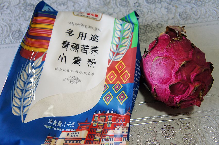 这面粉就是青稞苦荞小麦面粉,与火龙果汁搭配不但颜色漂亮,充满麦香味,松软香甜,而且营养价值高,青稞面的营养是众所周知的,含有非常丰富的膳食纤维,支链淀粉,聚糖等成分,而且还含有多种微量元素,能够补充身体所需要的矿物质,可以起到很好的缓解胃酸过多作用,又能够把身体里面的有害物质清除干净。而青稞苦荞小麦面粉含有多种纤维素和碳水化合物,食用后能健脾益气,也能开胃宽肠,修复受损的胃肠粘膜,还能促进肠胃蠕动,提高人体消化功能,对秋季调理肠胃非常有好处,平时多吃点粗粮既能减脂还能养胃,一举两得。
