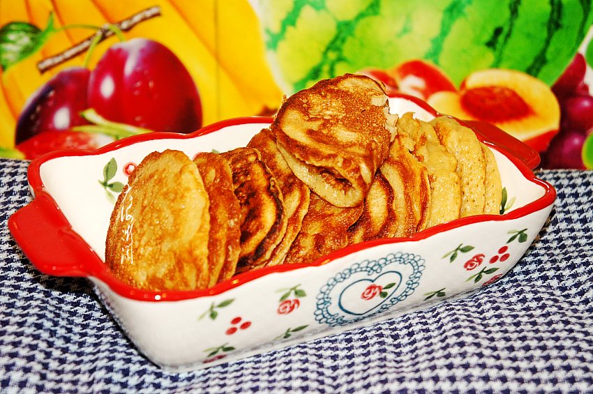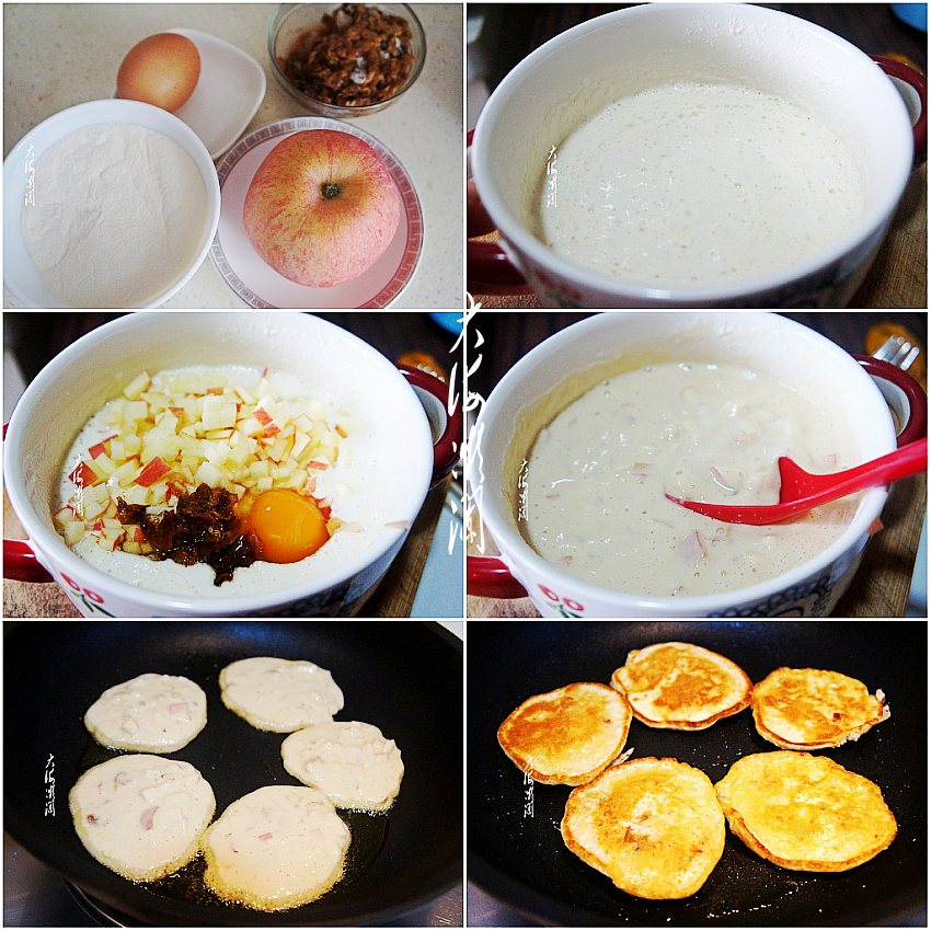 4、平底锅薄薄地刷底油,用适中的汤匙,舀一勺面糊放入锅中,轻轻压平,一勺一个,小火烙。一面烙好,翻面烙另一面,两面金黄就OK了。