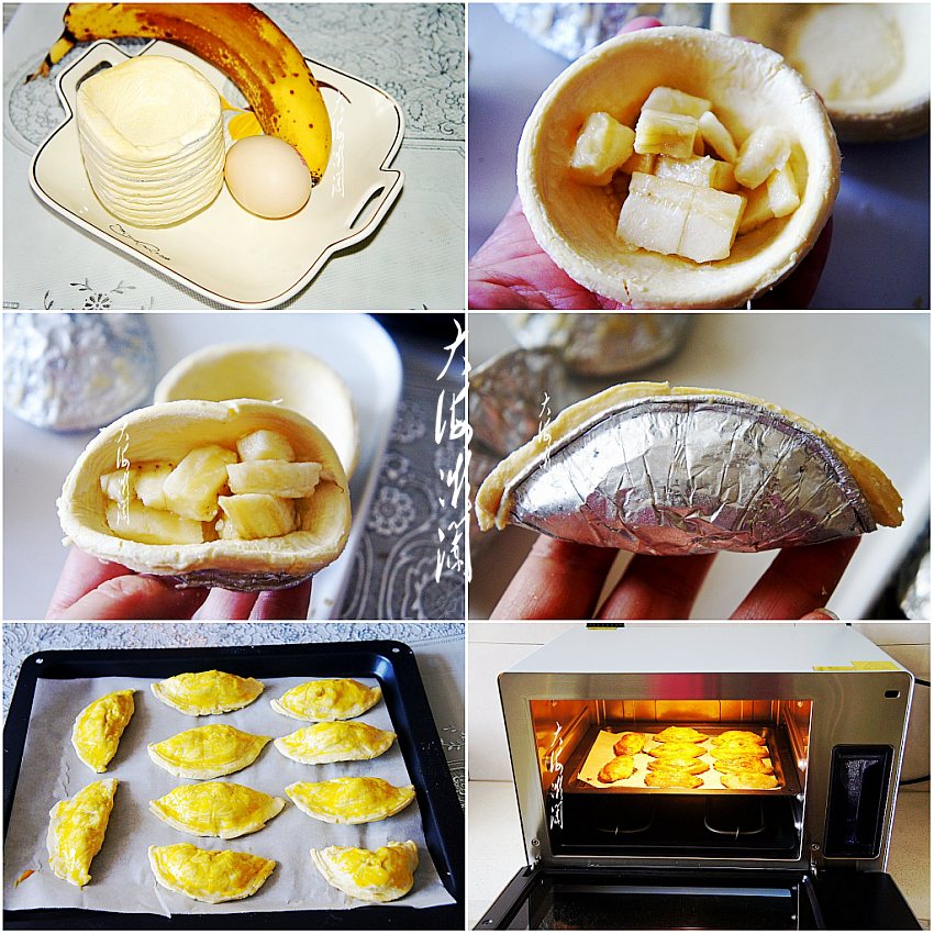 食材:蛋挞皮10个;香蕉2根;蛋黄1个。