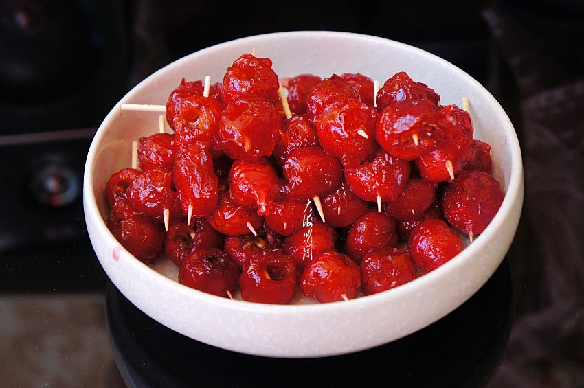 做法:1、山楂清洗干净,在淡盐水中浸泡10分钟左右,再反复冲洗干净,取出山楂籽,用牙签串成串,拿着吃非常方便。