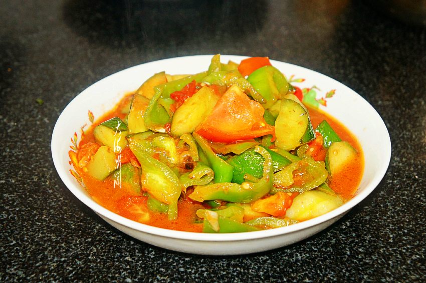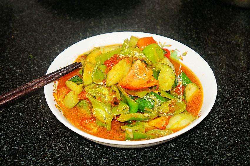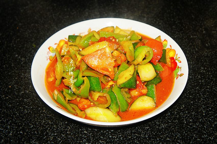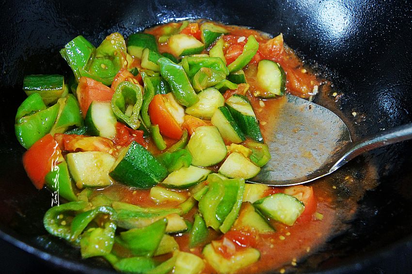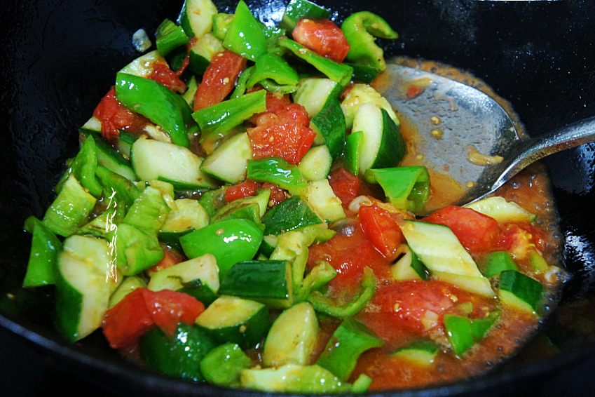 这道菜就是番茄炒黄瓜,很多健身教练推荐的减脂食谱,加点青椒更爽口,这三种食材搭配,给人的感觉满口都是维生素,常食不但减脂瘦身,还有美容养颜的作用。