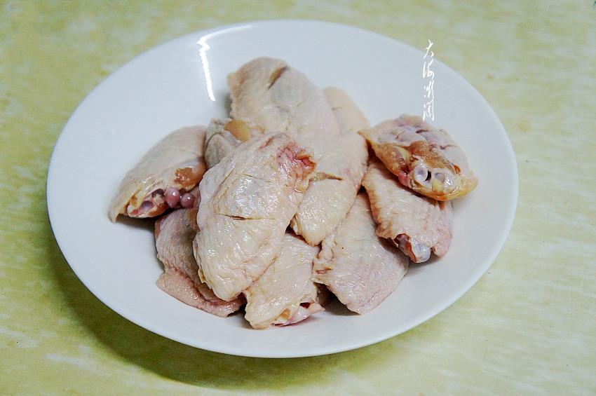 买回来的鸡翅中清理干净,反复洗净,两面斜切几刀,便于入味,怕影响美观,正面也可以不切。
