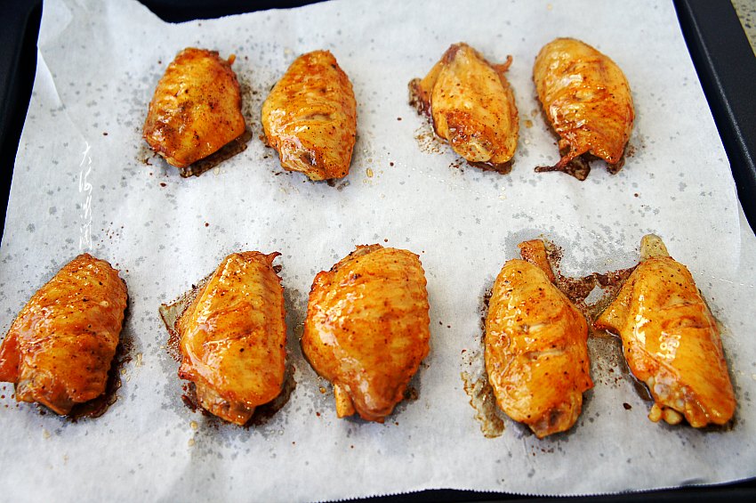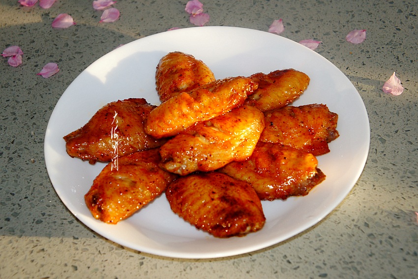 将烤箱200度预热,放入烤盘,上下火中层200度烤10-12分钟,拿出后,翻面,然后刷上蜂蜜,再放入烤箱烤5分钟,关掉烤箱,用余热再焖5分钟,这样烤出来的鸡翅不干,口感很鲜嫩。