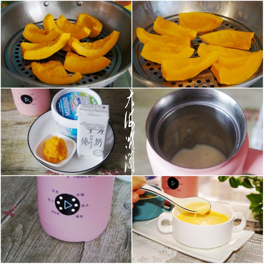 食材:牛奶1盒;南瓜适量;炼乳1汤匙。