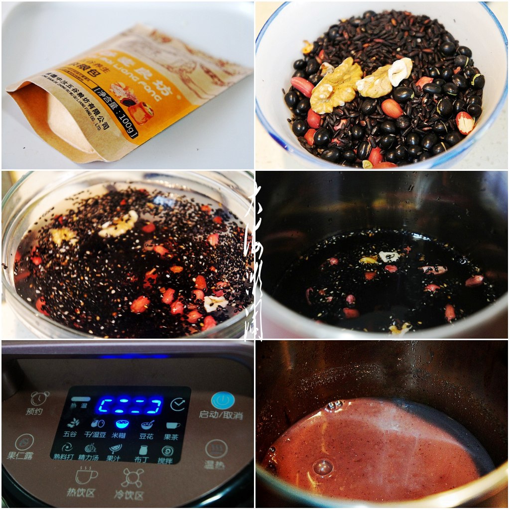做法:1、准备一包五谷养生杂粮包,这是网购的半成品,1包100g,刚好吃一顿,其中含有黑豆、黑米、黑芝麻、花生、核桃,而且都是焙熟的食材,做成早餐羹有股子特别的香味。