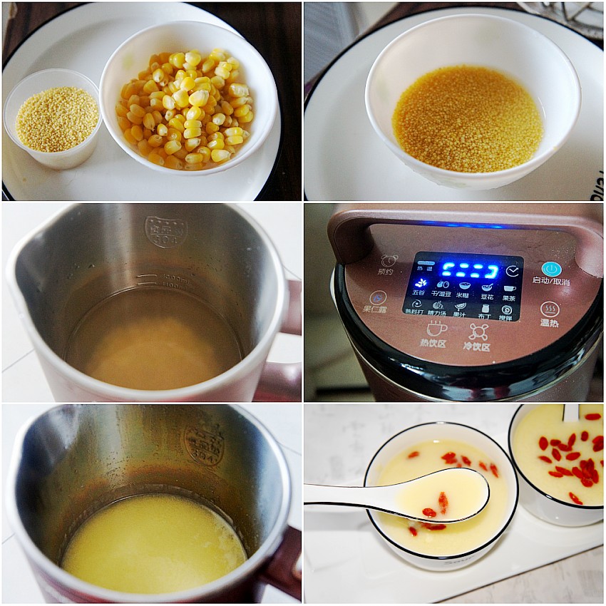 食材:小米50g;嫩玉米1只;枸杞子适量。