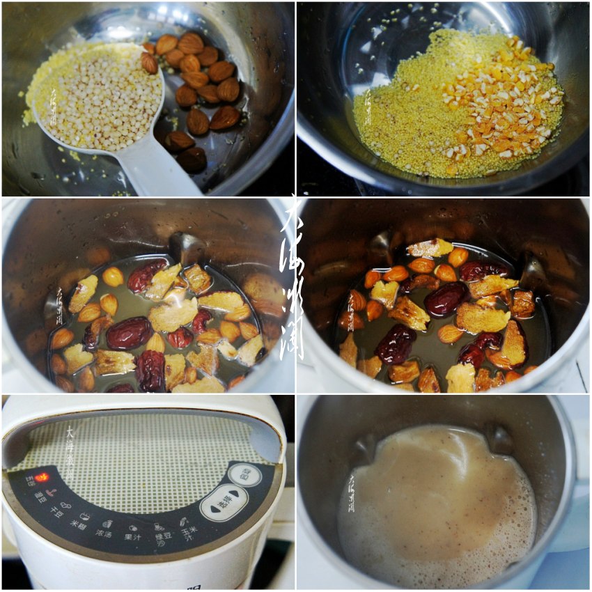 做法:1、小米和高粱米淘洗干净,杏仁淘洗干净。