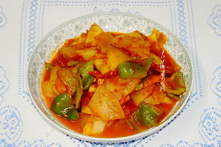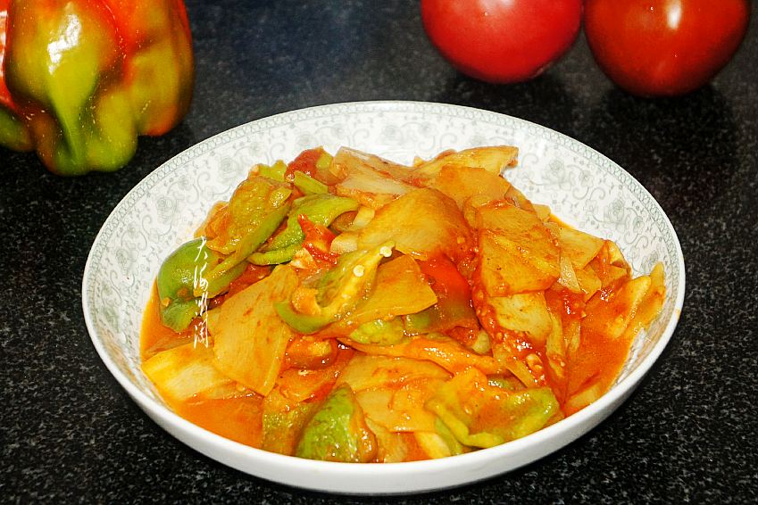 青椒是我们餐桌最常见的美味佳肴,也是女性朋友最喜欢的蔬菜之一,特点是果大肉厚,脆嫩爽口,辣味较淡有的甚至根本不辣,维生素C含量丰富。所含的辣椒素,能够促进脂肪的新陈代谢,防止体内脂肪积存,有利于降脂减肥。这三种食材搭配,脆嫩多汁,酸甜可口,开胃下饭。女人常吃,还能吃出好气色。