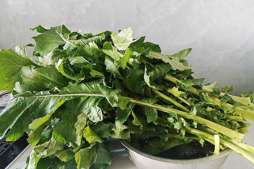 这菜就是红萝卜缨子,北方秋天大萝卜上市,萝卜缨子非常多,很多人家买回去都给扔掉了,很可惜。其实,它的营养价值比萝卜还高,尤其是红萝卜缨子,钙含量排在所有蔬菜的第一位,维生素C含量高出萝卜近两倍,矿质元素中的钙、镁、铁、锌等含量高出3~10倍。而维生素 K的含量也高于其他食物,可以说萝卜缨子是人体摄取天然维生素K的最佳食品。所以买回来带缨子的萝卜,缨子千万别扔,好吃又营养,有补充钙质、补充维生素的作用,而且还有补铁的效果,对于促进新陈代谢是很有好处的,一种非常不错的多元素的食物。