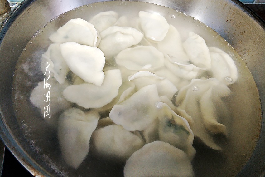 煮饺子:教你一个煮饺子的小技巧,包好的饺子开水下锅,煮开浇上半碗冷水,再煮开再浇一次,第三次煮开出锅,饺子煮的恰到好处。出锅装盘。