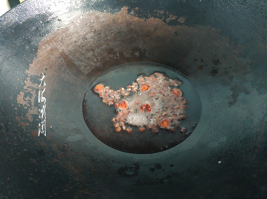 锅中加入适量的油,下入花椒、八角和桂皮炸出香味,捞出扔掉。