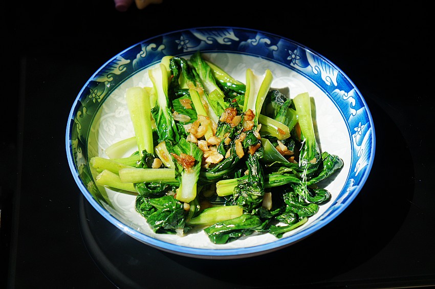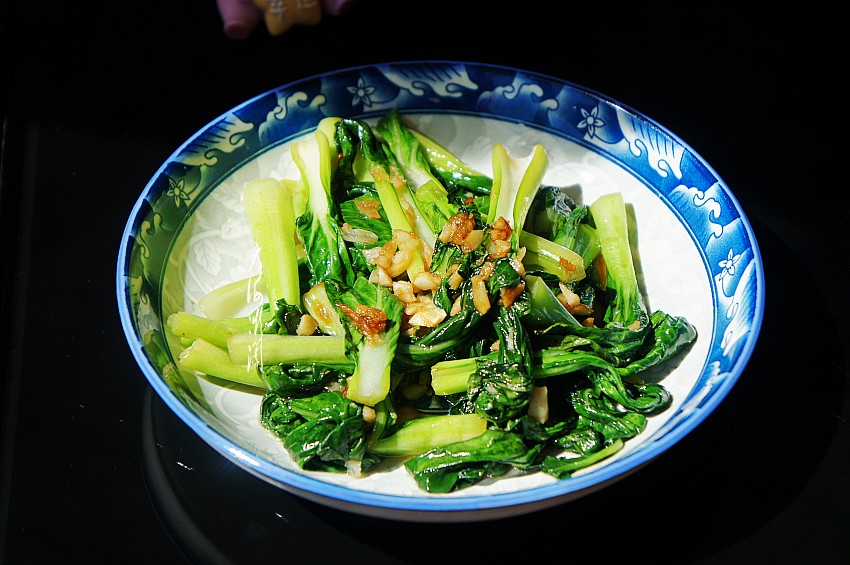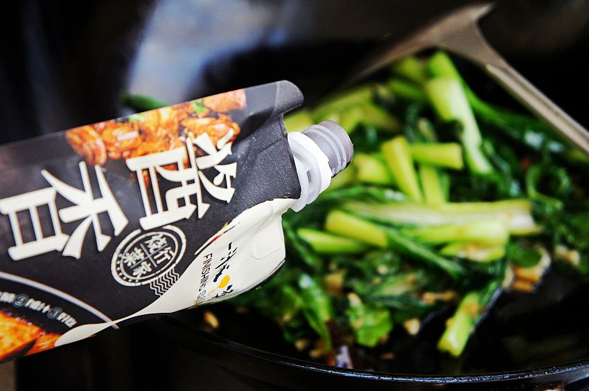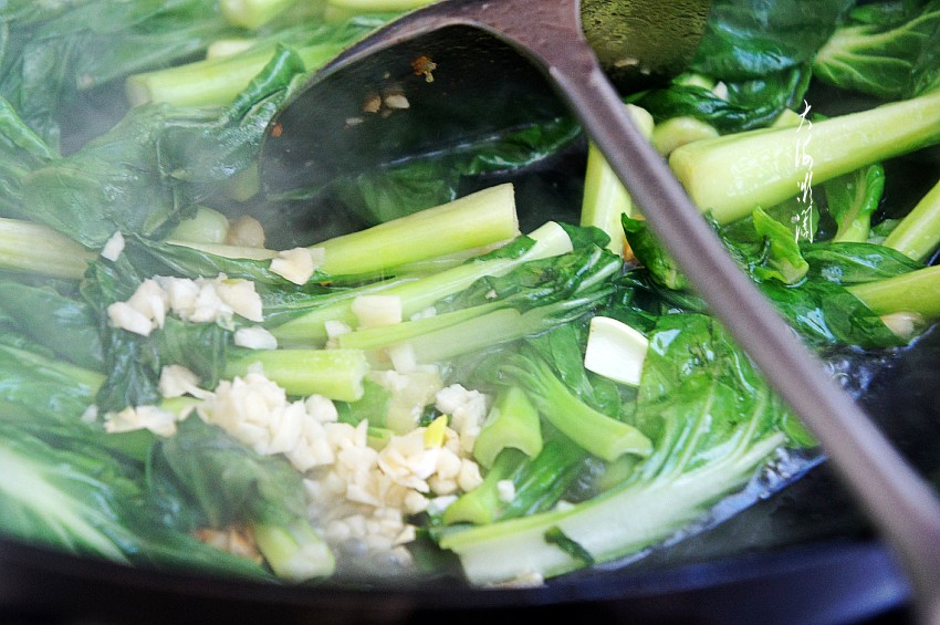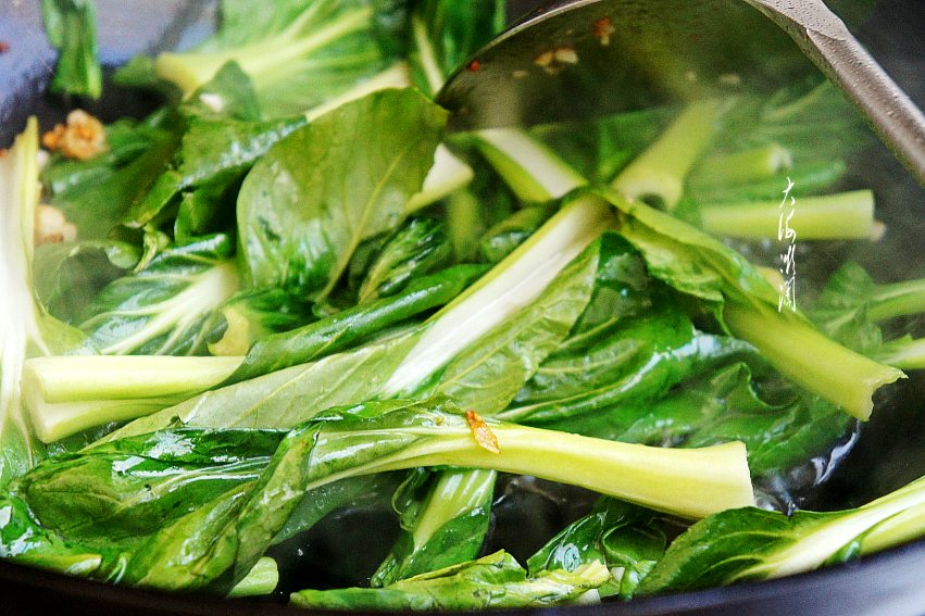 【蒜香爆炒小油菜】所需食材:小油菜1把,油、五香粉、蒜、姜、酱香汁各适量。