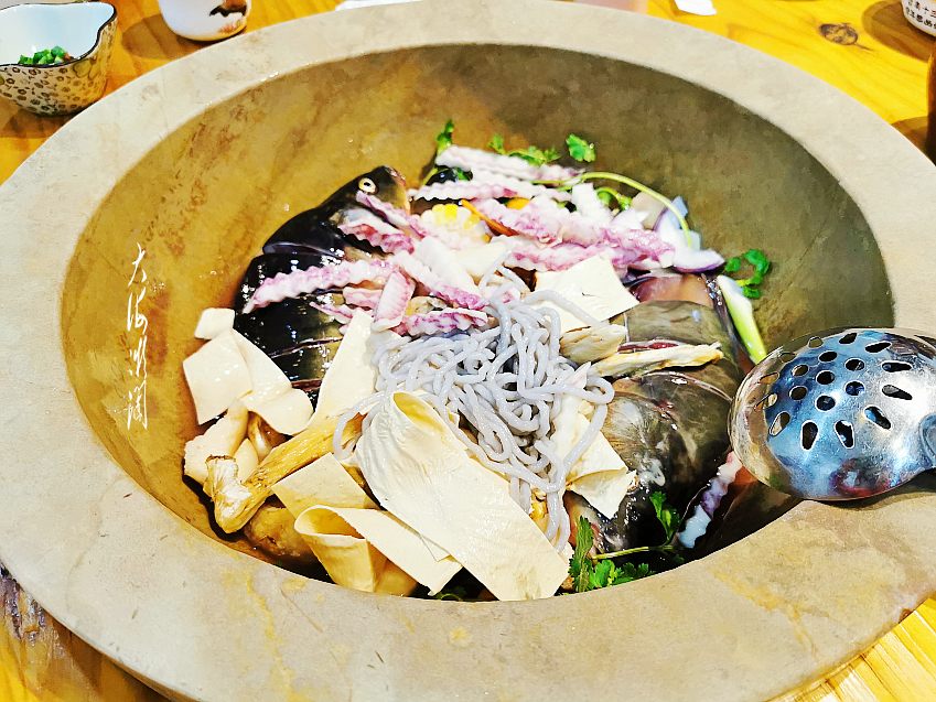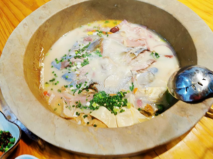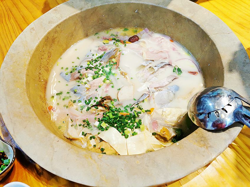 石锅鱼在泸沽湖是非常有名气的,其选料新鲜,配料丰富,成品鱼味道极其鲜美,汤汁乳白,非常有特色。