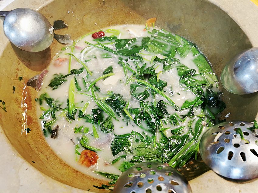 鱼吃完后开火,放入蔬菜来煮,很清香,味道超级棒,我们没再加菜,好吃到撑。总之来泸沽湖,这个蒸汽石锅鱼一定要吃,物美价廉,超值了。