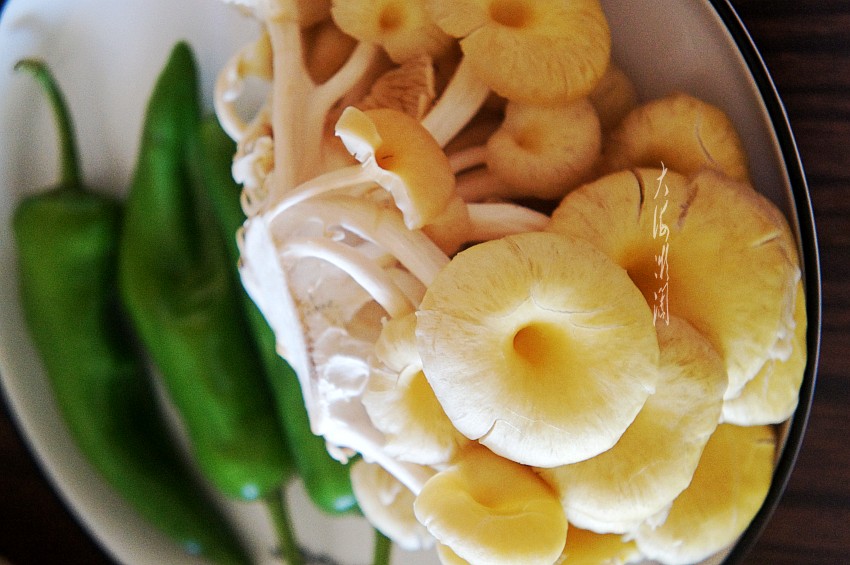 清洗干净的榆黄蘑,焯水后,捞出备用。小辣椒改刀斜切块,不能吃辣椒可以把筋剔除。秋冬常吃点辣椒有好处,辣椒是所有蔬菜中维生素C含量最丰富的食物。维生素C可提高人体免疫力,帮助抵御各种疾病,还有美容养颜的作用。含有的辣椒素可以促进消化,有利于预防和治疗胃溃疡疾病,还有抗炎抗氧化,促进血液循环,起到改善心脏功能,预防血栓形成的功效。