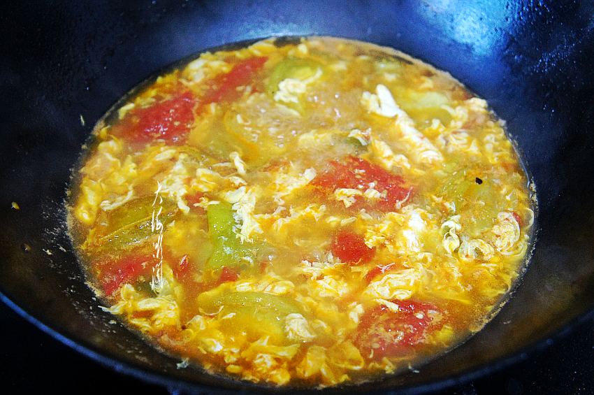鸡蛋打散,搅拌均匀,少许兑点料酒去腥,均匀地将蛋液撒入锅中,水开即可关火,喜欢的可以勾芡汁,我一般都不勾芡汁,尽量少吃淀粉哈。