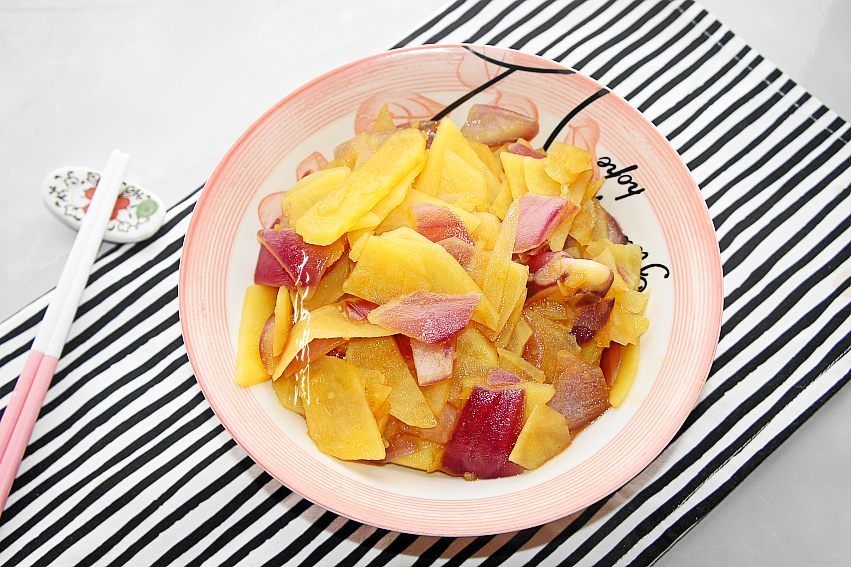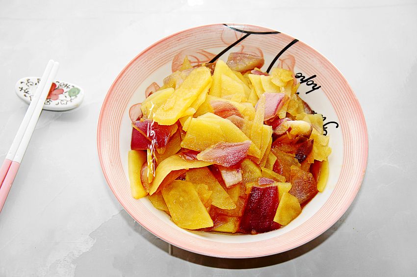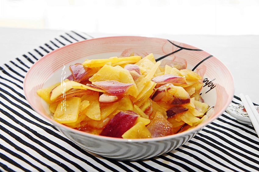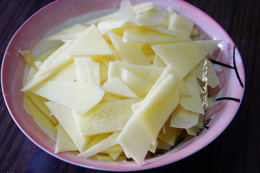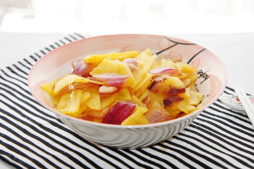 土豆切菱形片,多加点冷水浸泡5分钟左右捞出,泡出淀粉再炒不烂不碎。土豆被称为“十全十美”的食物,有“地下苹果”之美誉,也是众所周知的抗衰老的食物,有很好的呵护肌肤、保养容颜的功效,同时因含有丰富的膳食纤维可以起到通便排毒和清肠刮油的作用,当主食很有利于减肥瘦身。