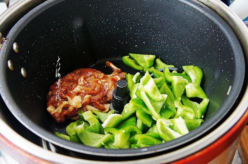 今天我用的是多功能炒菜机做的青椒炒肉,爆炒功能,三分钟就能搞定一道菜,用这锅炒菜不用炝锅,直接把所有食材放进锅内,省事,而且无油烟。