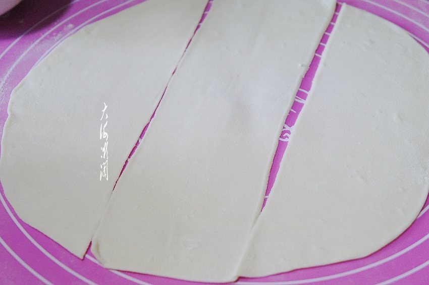 然后对折,略差一点点,捏住中间按一下,两头连接捏紧就OK了,是不是很简单。如果感觉面皮比较厚,包之前还可以再擀一下。