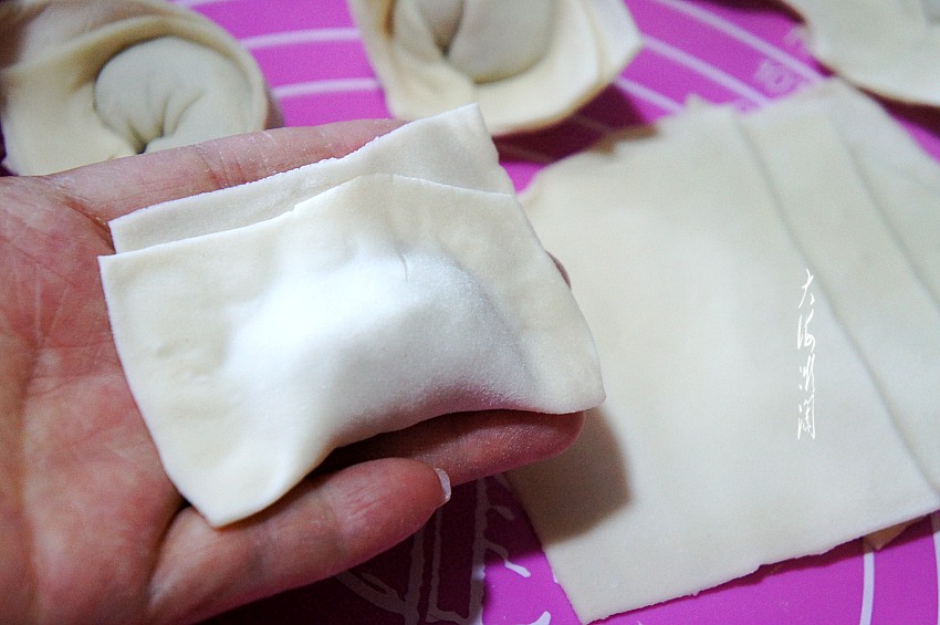 2、擀面皮时加点玉米淀粉,既可以防止粘连,还能使馄饨皮的表面更细腻光滑。