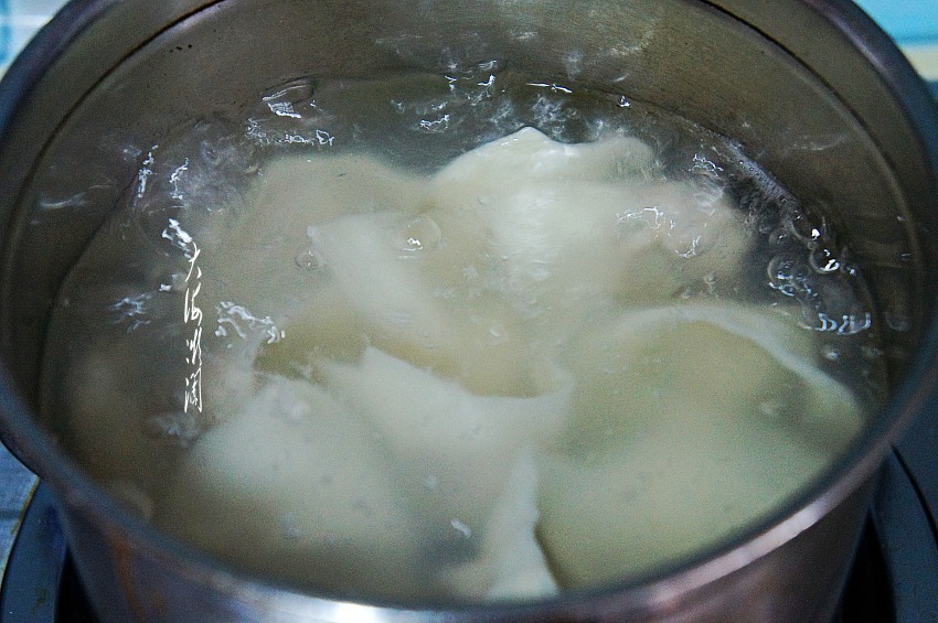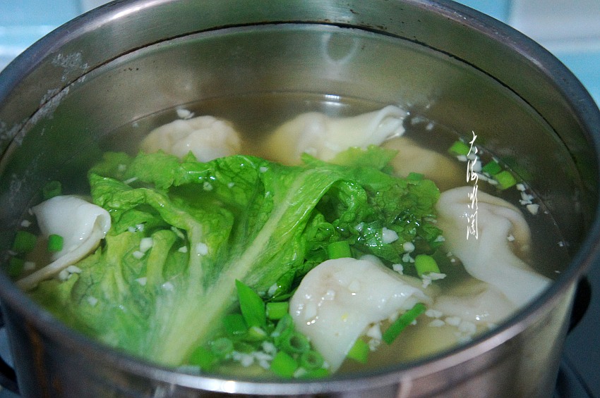 煮馄饨:锅中加入适量的水,水不要太多,水开后下入馄饨,翻开后点入冷水,第二次翻开再点入冷水,第三次翻开即可关火,馄饨煮得恰到好处。
