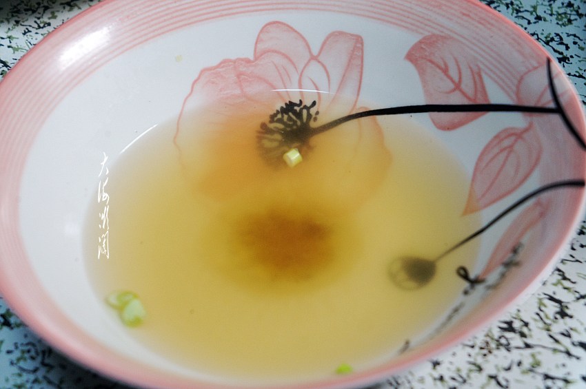 碗中加入适量的白胡椒粉、松茸鲜、盐,热鲜汤调匀。待面条煮好,捞出放入碗中。