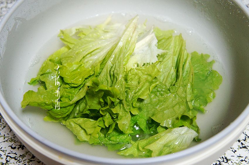 准备食材,生菜叶清洗干净,不喜欢生菜叶的可以换成油菜或者自己喜欢的青菜。