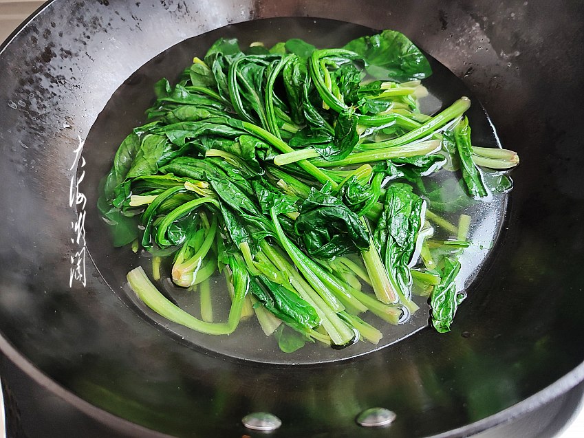 菠菜去掉根部和老叶,摘洗干净,在淡盐水中浸泡10分钟,然后反复清洗干净。锅中加入适量的水,加少许盐、油,水开下入菠菜焯水,然后捞出过冷水。菠菜中含有草酸,食用之前一定要用开水焯烫一下,目的是破坏掉菠菜中的草酸,防止形成人体难以吸收的草酸钙。