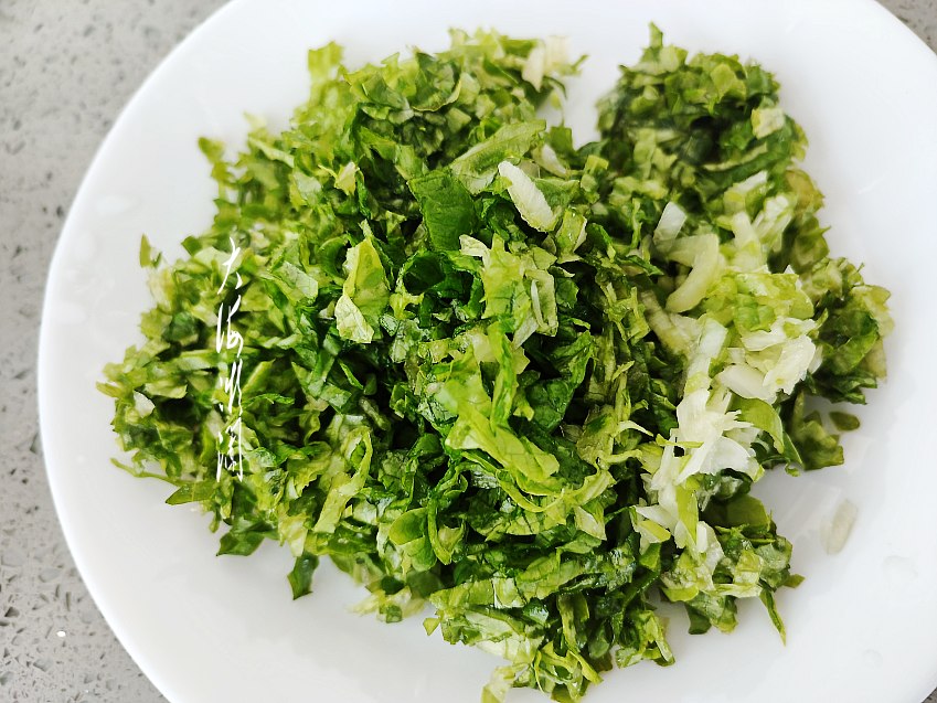 洗净的生菜切碎,葱去皮洗净切碎。