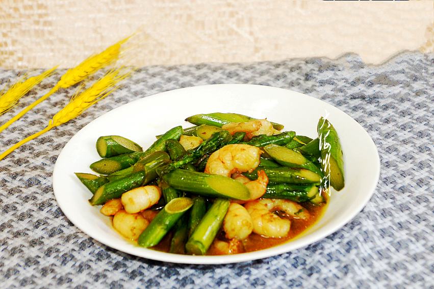 做法:虾仁清理干净,放入碗中,加料酒和姜丝拌均匀,腌制10分钟。芦笋去老皮洗净,切斜段焯水,在沸水中焯2分钟,捞出过冷水控净水分。锅内加入适量的油,滑入虾仁,炒至变色。下入芦笋翻炒,少许加点水炒透,最后加点六月鲜轻盐原汁酱油调味。口重的可以加点盐,喜欢的勾薄芡。