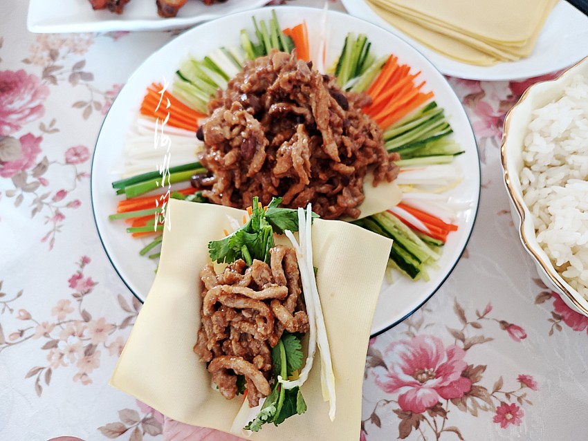 春天,最开胃最好吃的莫过于蘸酱菜了。最近临时接手,给家中的学生做午餐,感觉是彰显技能的时候了,每天换着花样做,天天不重样,既要孩子吃得好,还要孩子吃得饱。昨天去超市买了干豆腐,南方叫千张,超薄的那种,东北的干豆腐干爽又超薄,豆香浓郁,大人孩子都爱吃。这种干豆腐最适合卷菜吃,配京酱肉丝没治了,太香!超级下饭。京酱肉丝怎么做才好吃?姐教你简单一招,肉丝滑嫩,酱香浓郁。