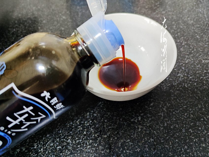 取小碗准备一份调味料,当减肥餐,越简单越好,我就放了点醋和六月鲜10克轻盐原汁酱油调味,正常拌凉菜可以再加点糖、蚝油和辣椒油、芝麻等。