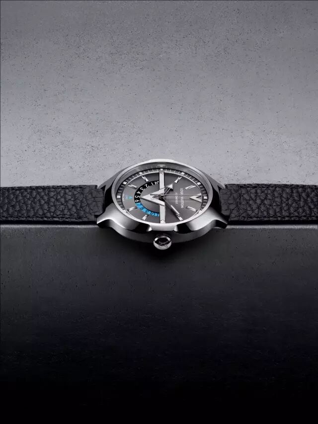 GMT与路易威登之前出品的手表样子有着明显区别,第一次采用了圆中带方的形状,圆形的表盘加上略有棱角的表壳,使得手表看起来更加沉稳扎实。而佩戴上,Voyager