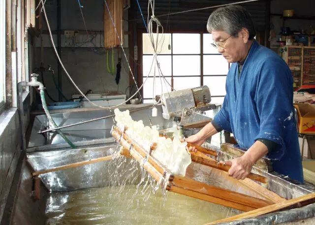 日本和纸以本土特有的雁皮、楮等树皮作为原料;在制作结构上,日本的和纸分为“表面层”、“背面层”以及“中间层”。“表面”和“背面”层与中国传统的宣纸相同,将纸浆荡入竹帘中,经摇荡,使纤维沉淀于竹帘,水分从缝隙流失,如此反复,直到理想的厚度;而“中间层”为了保证纸浆的均匀以及纸的韧度,会在充分摇荡之后,扔掉余下的纸浆,再荡入新的纸浆,直到所需的厚度,这亦是日本和纸在制作过程独特又关键的一步。至今,日本的半纸、美浓纸、奉书纸、鸟子等仍然就坚持着传统的“和纸”的手工工艺,主要用于制造日式灯笼、和伞、和扇等日本传统饰物。