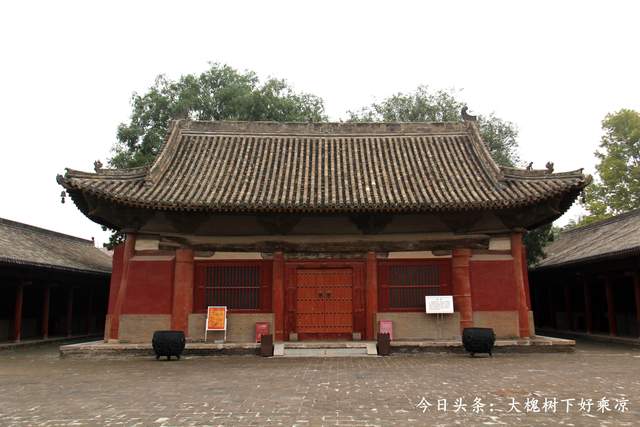这可是一座宋代大殿,跨越千年,留存到今天,大殿为北宋年间修建的,现在前后的献殿和寝殿是清代的时候修建的,把中间的北宋大殿包了起来,形成南北跨度很大的一组建筑,就看不出北宋大殿的整体风采。