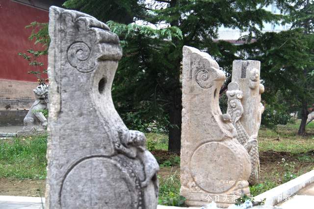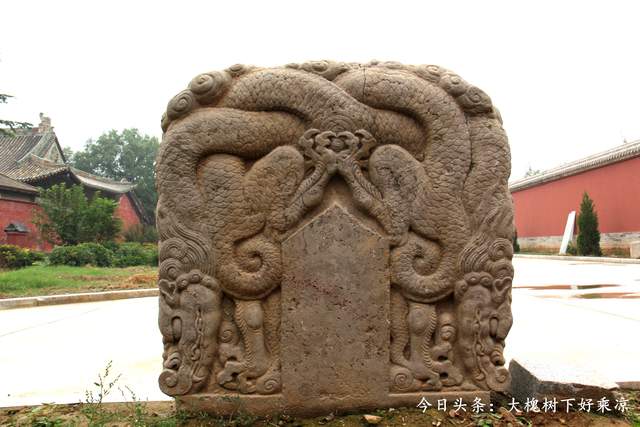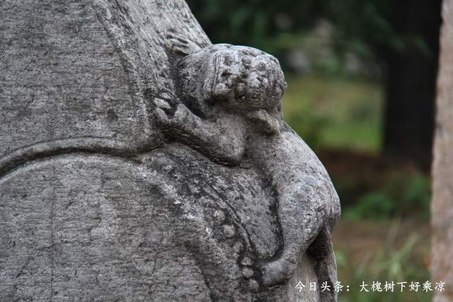 【碑额】石碑底座,一般上讲究的都是雕刻着赑屃,赑屃驮着石碑,而中间部分是碑身,是要刻字的地方,而顶部就是碑额,讲究的一座石碑,精华部分都在碑额所展现,这座石碑漂亮与否,全看碑额呢!