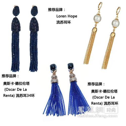 在众多时尚流行关键词里,你总能看到有“流苏”。流苏也被用在耳环的设计中,女星红毯上的奢华礼服肯定少不了流苏耳环的陪衬。好莱坞女明星克里斯汀·贝尔(Kristen