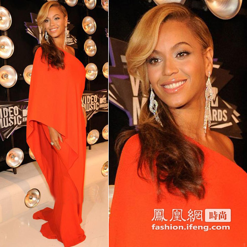 碧昂丝·诺里斯(Beyonce Knowles) 的奢华钻石流苏耳环分外抢眼。橘色不规则单肩礼服裙与手上的大宝石钻戒和手镯呼应的恰到好处。全钻的流苏耳环让碧昂丝·诺里斯(Beyonce Knowles) 走到哪都是众人的焦点。长发挽到一侧露出另一侧脖颈的发型,正好将钻石流苏耳环展现出来。