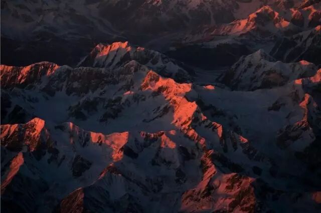 下面这张照片显示了加拿大多伦多的一次风暴,是海斯特作为乘客乘坐飞机时拍摄的。他在拍摄时使用鱼眼镜头,创造了照相机在机舱之外的幻觉。最后一张照片:喜玛拉雅山日落。海斯特说,“看到这样的景色总会让我想到:我干这份工作,在这个位置上,非常幸运。”(完)