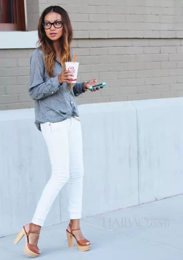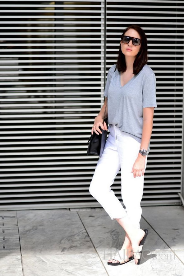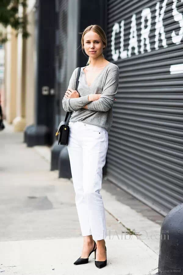 白色紧身裤应该怎么搭配?![[噢耶] [噢耶]]()