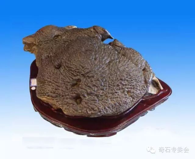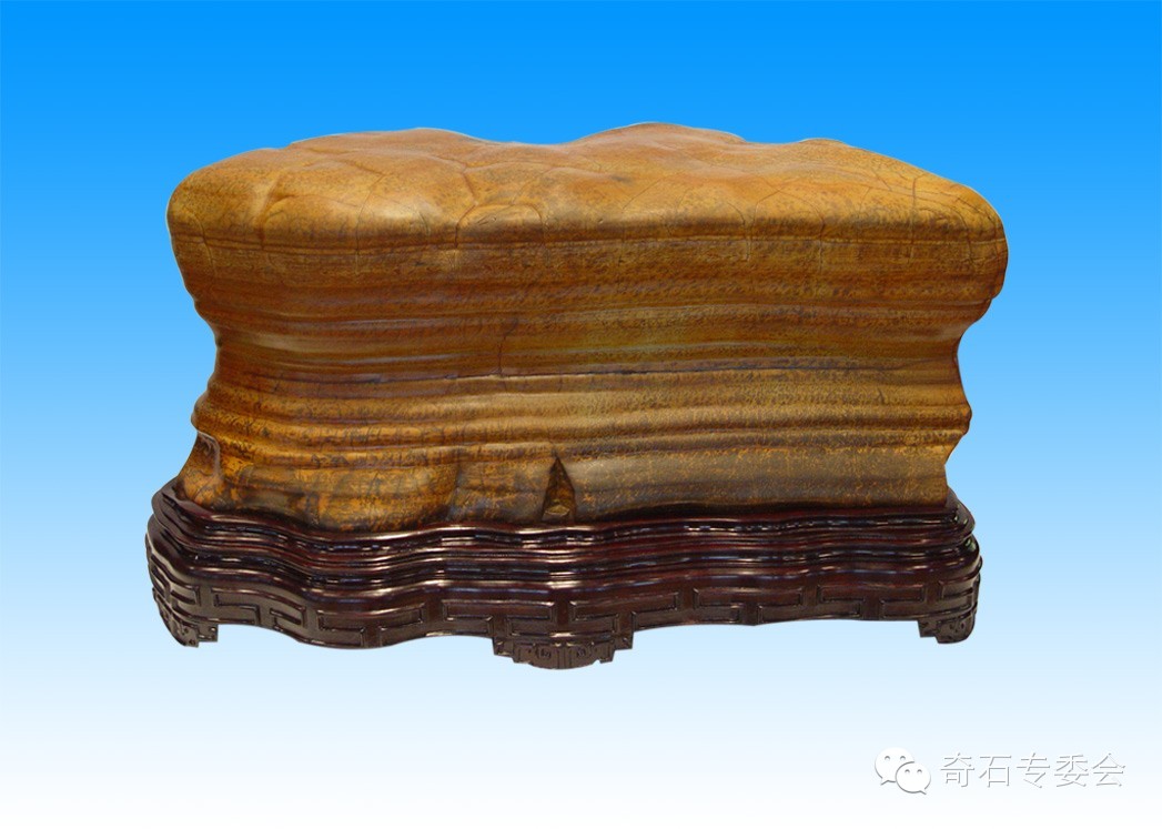 现收藏于北京藏家手中,是一块产自广西的深水石,恰似一只静卧千年的巨大海龟。经过上亿年在深水中旋涡式的冲刷而形成的一块表面奇特,凹凸不平,形似蜂窝状纹理的奇石。它高高隆起的背,隐而不出的头,极其美妙的背纹以及强悍的四肢都恰到好处地显示出一种隐而不发的力道之美。它神态沉静、舒缓,于无声处蕴涵有千钧定力,以手拍之,感觉有一种强烈的共鸣,显示出一种旺盛的生命力。龟在中国传说中也有长寿、祥和稳定的寓意。