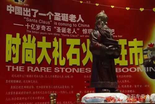 现收藏于北京藏家手中,产自内蒙古戈壁滩通透灰玛瑙的奇石圣诞老人为稀有罕见石种,形成于十亿年前。据奇石界专家评估,价值在千万元之上,颇具赏石价值,称“这块形神兼备的石头可谓中国第一象形玛瑙石”。它神态颇像一位慈祥和蔼的圣诞老人,宽宽的额头、微眯的笑眼、花白的胡须,双手捧着送给我们的圣诞礼物,笑眯眯地走来了。