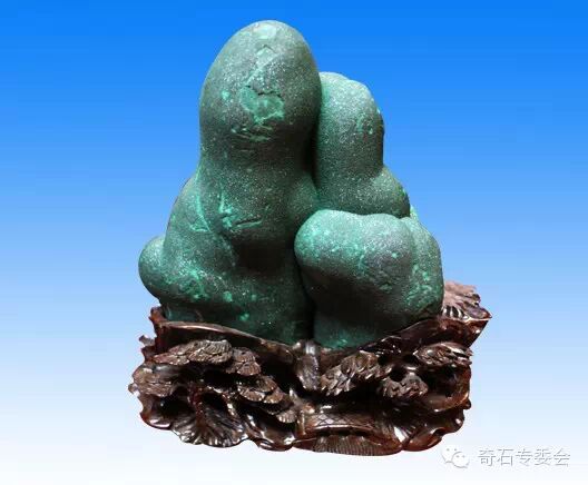 现收藏于北京藏家手中,一块是孔雀石,一块是蛋白石,这两块奇石非常相似,一位母亲拥子入怀,四目相视,舐犊之情跃然举手头足之间,洋溢着浓浓的母爱,寄托着自己的希望和梦想。