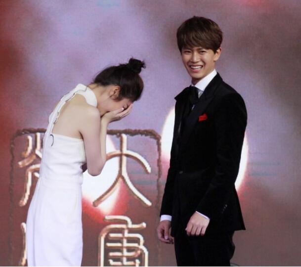 终于,景甜忍不住掩面大笑,又是娇羞又是大笑,把一脸认真的任嘉伦也带出戏了,尴尬的看着台下的观众笑笑。台下观众都惊讶了,为何景甜可以让这个新人亲呢!