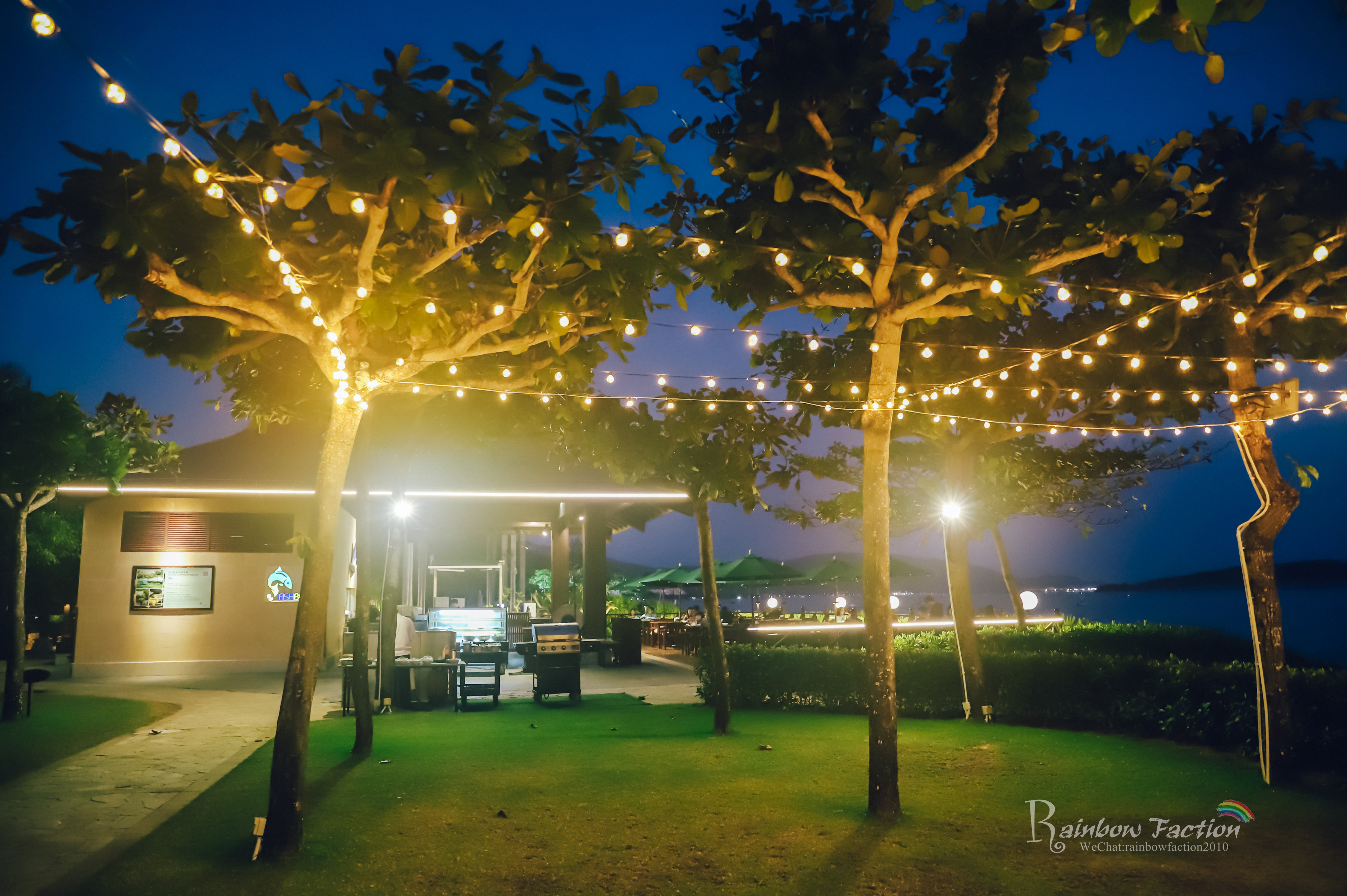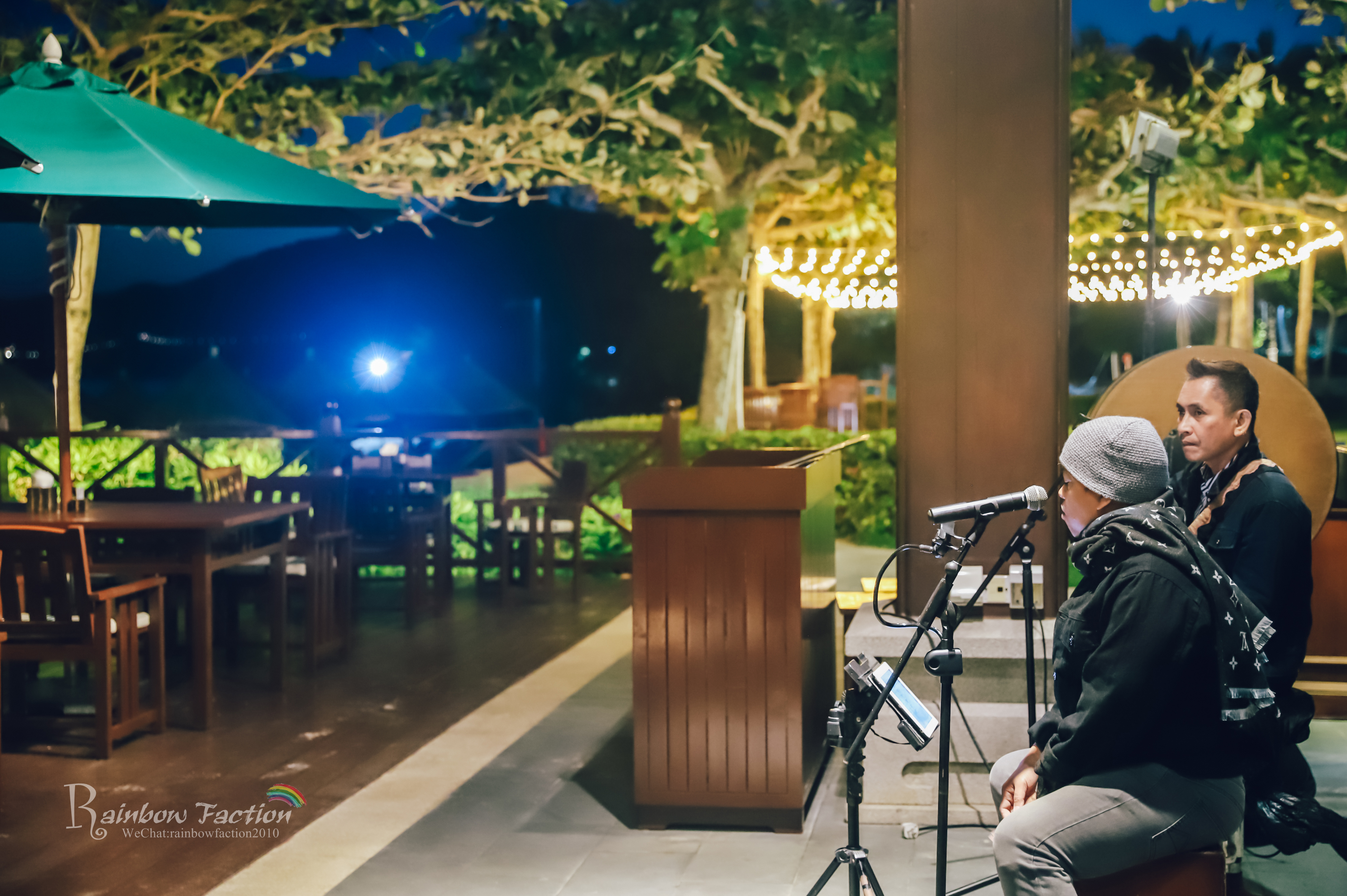 鱼吧海边餐厅坐有万豪C位海景,夜幕下灯火盈盈,音符飘荡。