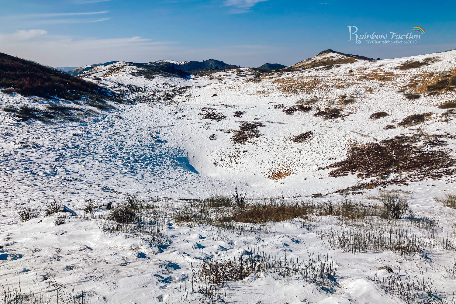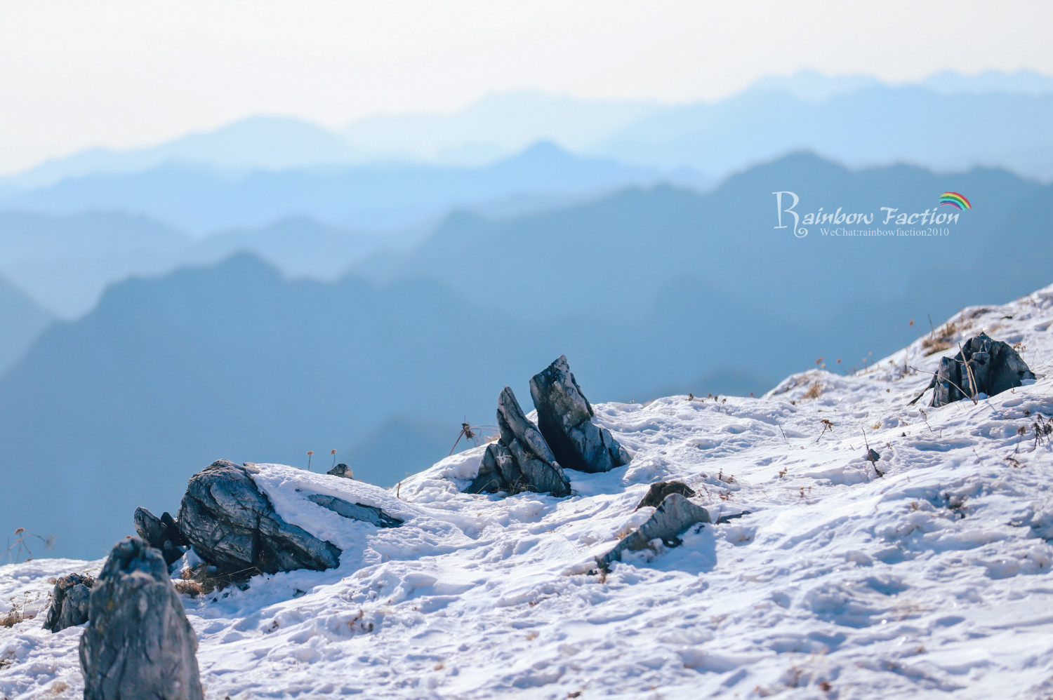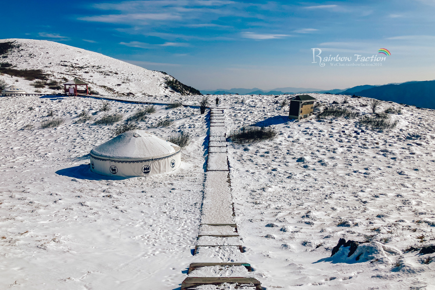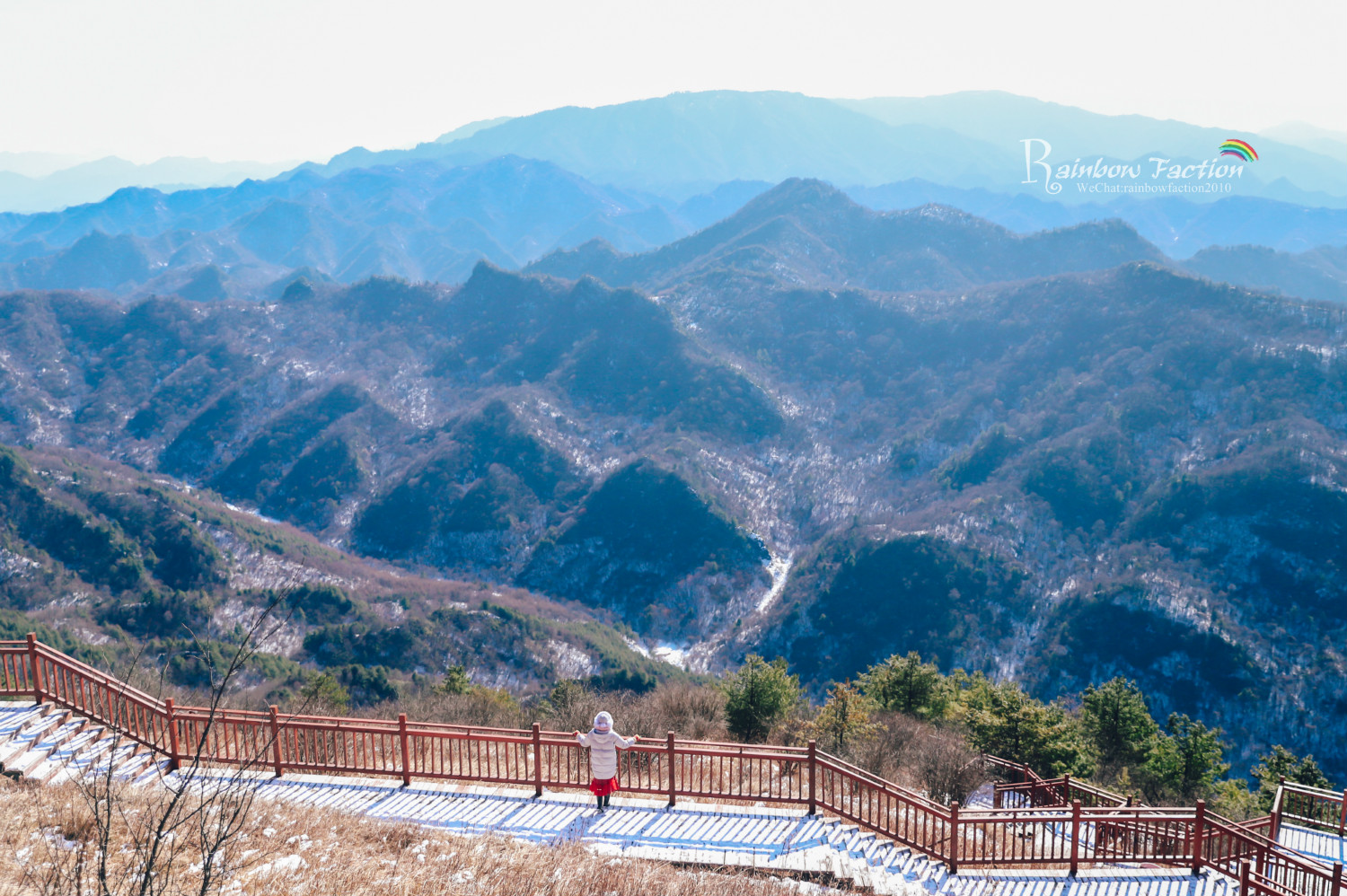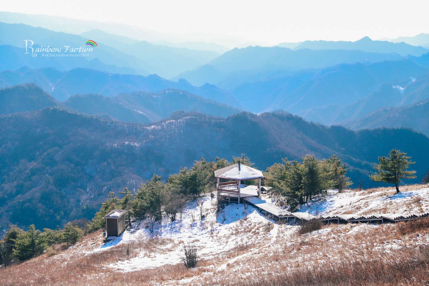 雪后初霁,我们寻觅而来,走在绵延十几里的山脊栈道上,踏雪登山别有一番滋味。