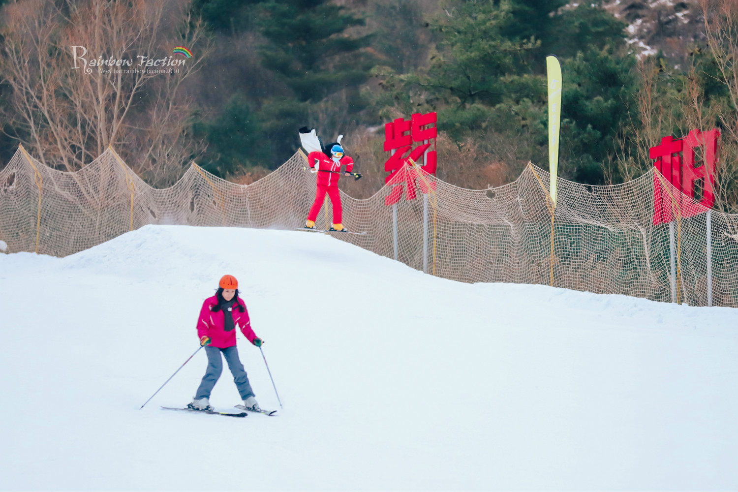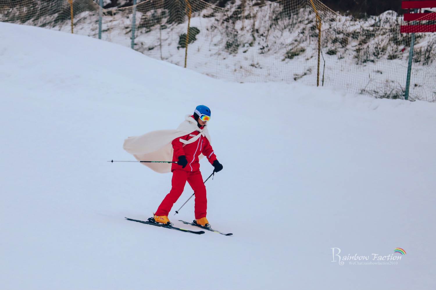 如果有眼福,还能看到帅气的滑雪教练,身披汉服斗篷在雪场上飞翔的精彩表演。