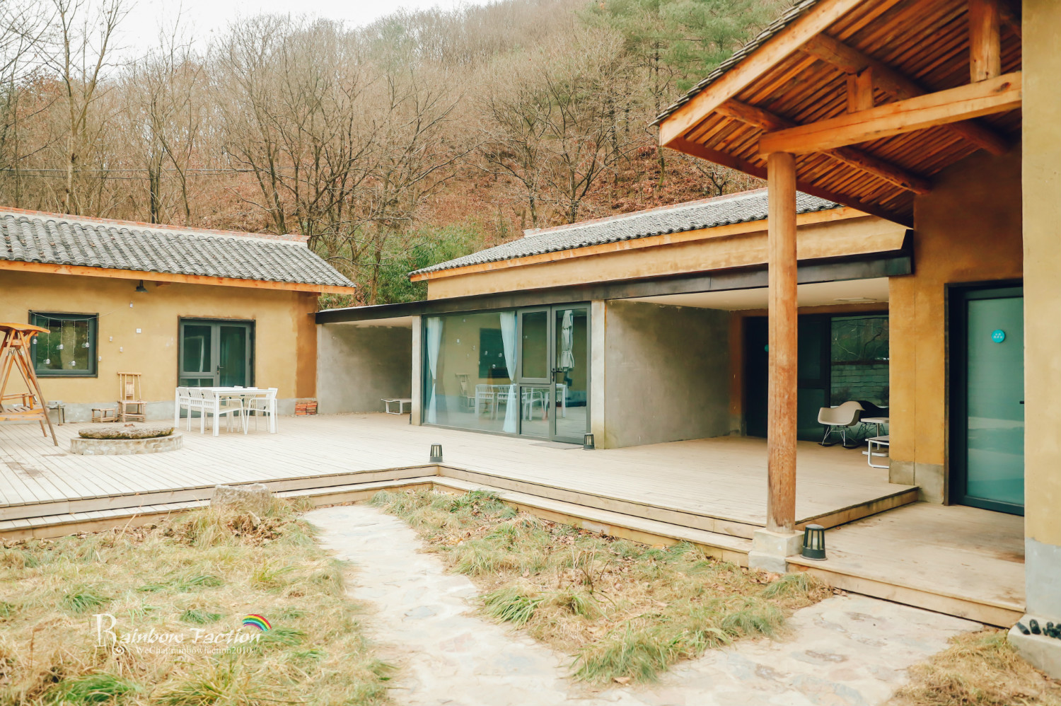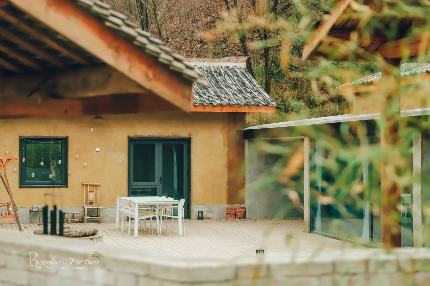 涧底黄茆屋,青瓦片,夯土墙,九座陕南特色老宅改建的民宿院落,分布在山间溪流沟谷两侧。